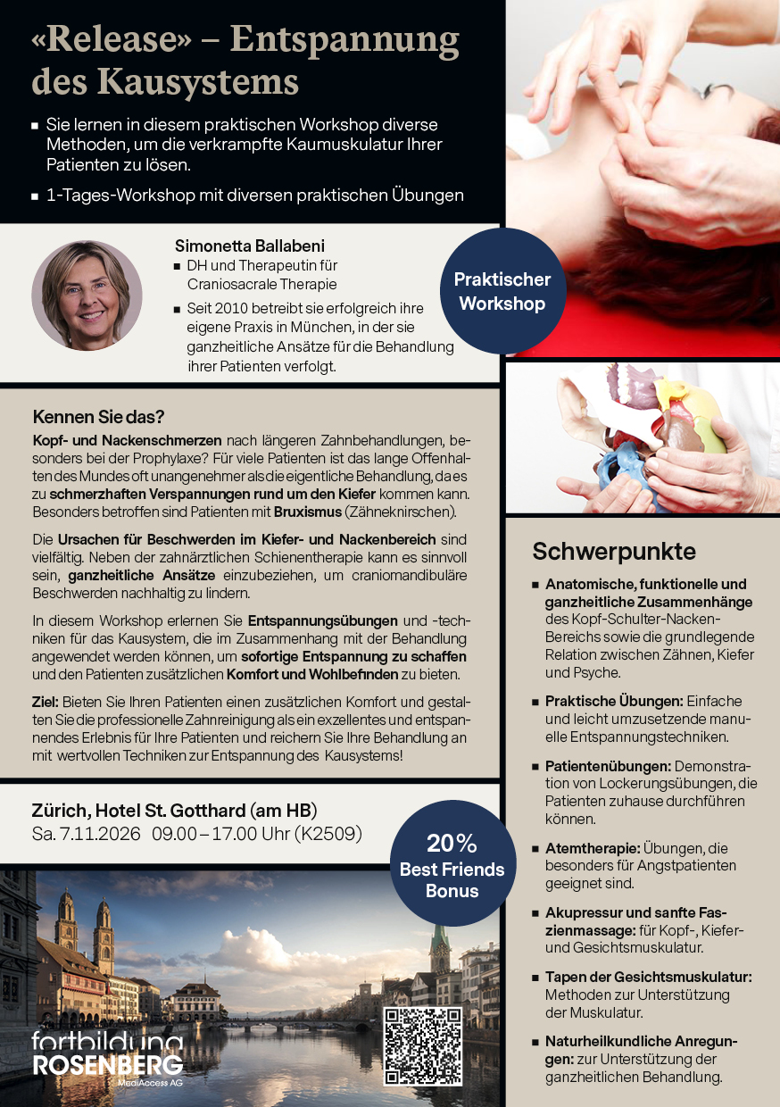 La formation continue en médecine dentaire avec des thèmes toujours nouveaux, des intervenants de premier ordre, des lieux agréables et un service orienté vers le client ont un nom: fortbildungROSENBERG.